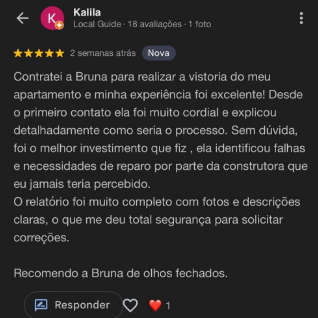 Depoimentos reais de quem já fez a vistoria com a Engenheira Bruna